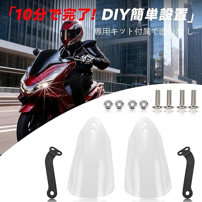【安全防護】走行中の飛び石や枝、泥水から手元を保護。ライダーの安全性と快適性を向上させるバイク用ナックルガードです。