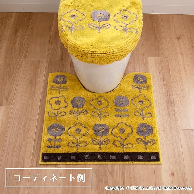 オカ(OKA) ポルク トイレマット 約55cm 60cm イエロー (洗える 花柄 北欧)
