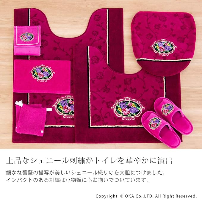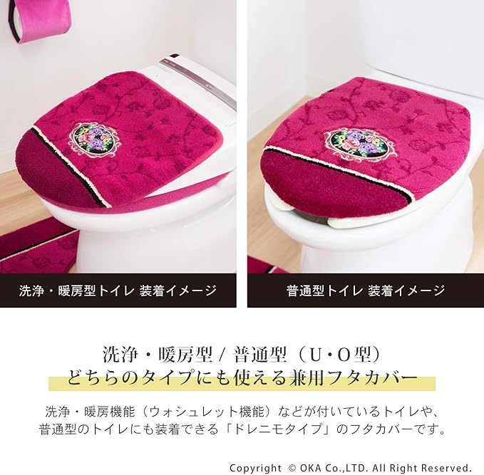 オカ(OKA) ふたカバー ピンク ドレニモタイプ(U、O、洗浄暖房兼用) シェニールロゼ (エレガント ゴージャス)