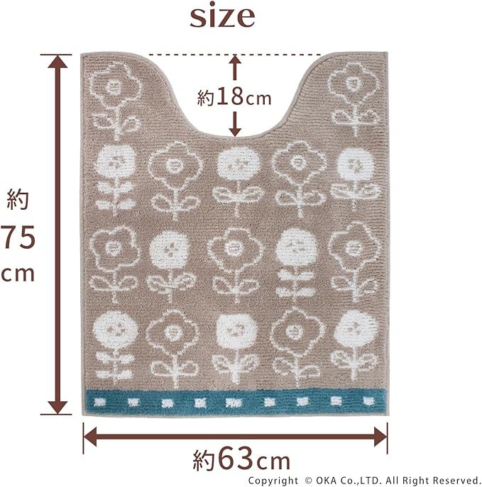 オカ(OKA) ポルク トイレマット 約75cm 63cm イエロー (洗える 花柄 北欧)