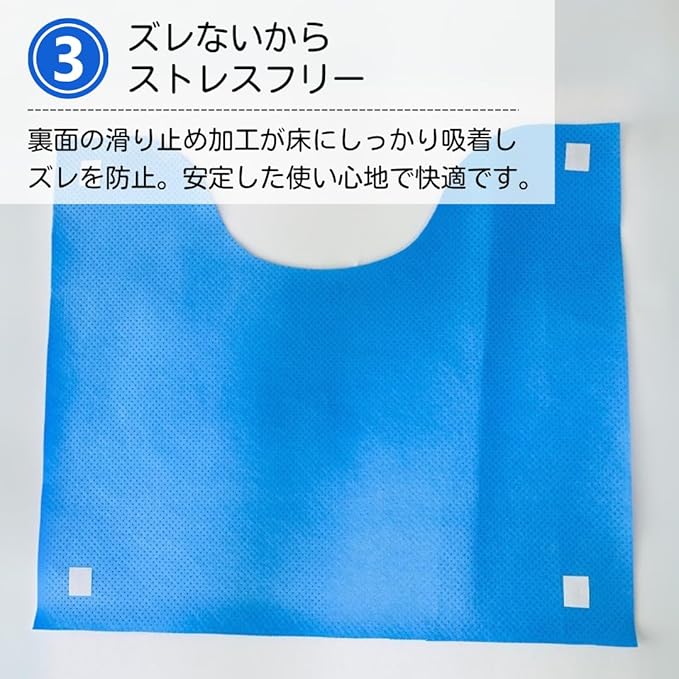 【いつでも清潔】吸水性に優れた素材が尿を瞬時に吸収し、足元の濡れや滑りを防ぎます。乾きやすく快適に使え、使い捨てタイプなので衛生的。毎日のトイレ掃除の手間を大幅に軽減します。