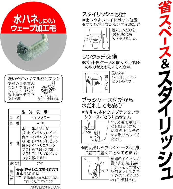 超スリムだから便器の横にもスッキリ置けるスタイリッシュフォルム