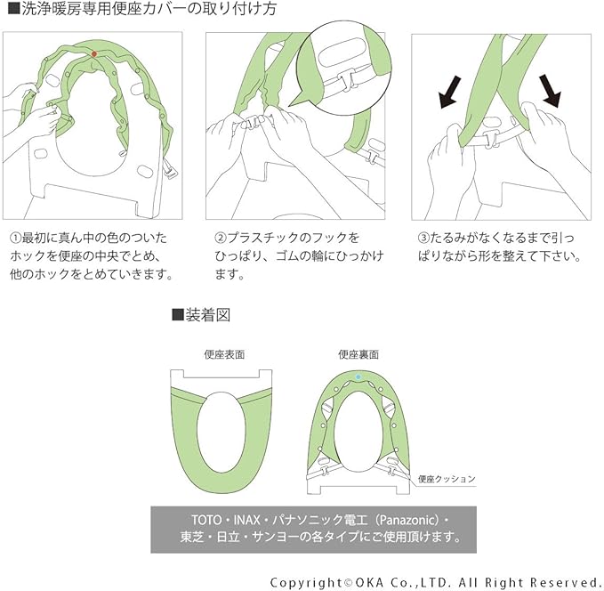 ベンザカバーを使って、暖房機能のスイッチをオフにしてみませんか?省エネでエコロジー!地球にも家計にも優しさを。洗浄・暖房機能のついた便座用のカバー。◎中央のホックがオレンジ色になっているので掛け違い防止に便利になりました! ロイヤルコレクションドイリー カラー ピンク,グリーン 素 材 表糸アクリル100% 芯糸ナイロン91%ポリウレタン9%