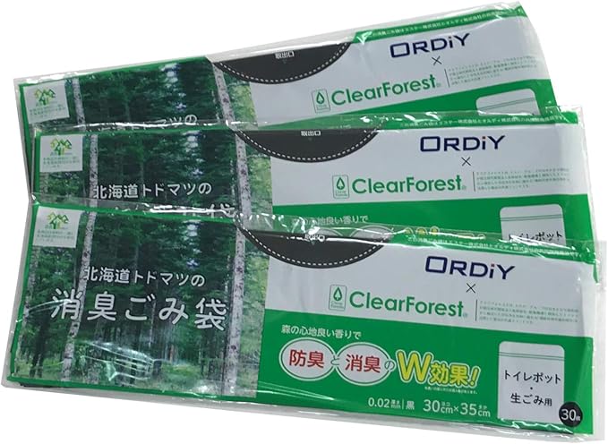 オルディ エステー 共同開発 消臭ゴミ袋 サニタリー袋 黒 30枚入 3個セット トイレポット用 生ごみ用 ポリ袋 クリアフォレスト HKD-TP-30