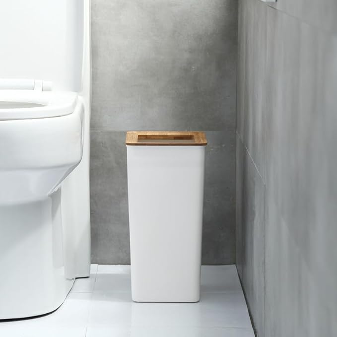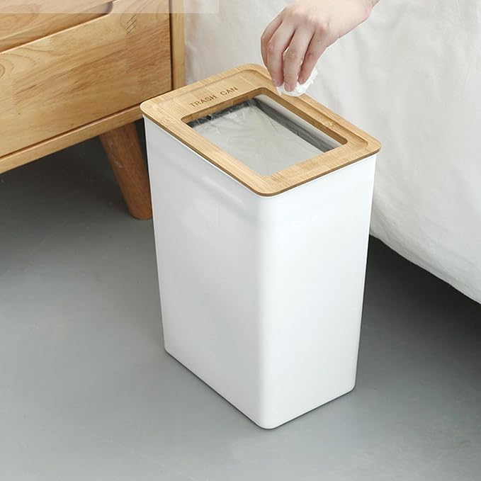ゴミ箱 スリム 2点セット 7L+9L コンパクト 角型 ごみ箱 竹カバー付き リビングルーム、トイレ、寝室、洗面所用