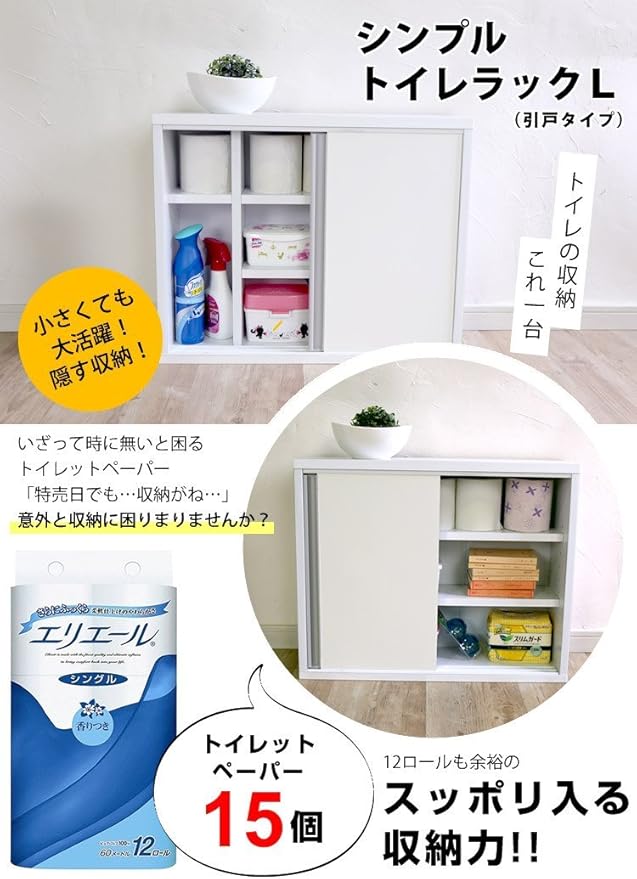 シンプル トイレ収納ラック L 引戸 タイプ (幅 60cm) BR-60H