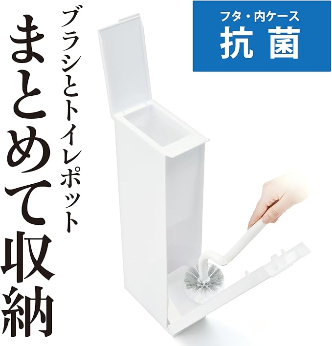 ●便器のフチに置いて衛生的に水切りができるケース付きのトイレブラシです。