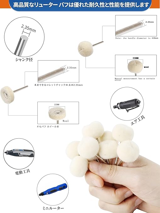【耐久性と実用性】小さな、良好な研磨効果、高効率、低コスト。品質の良いフェルトバフを使用し、表面に傷つけることなくソフトに仕上げます。