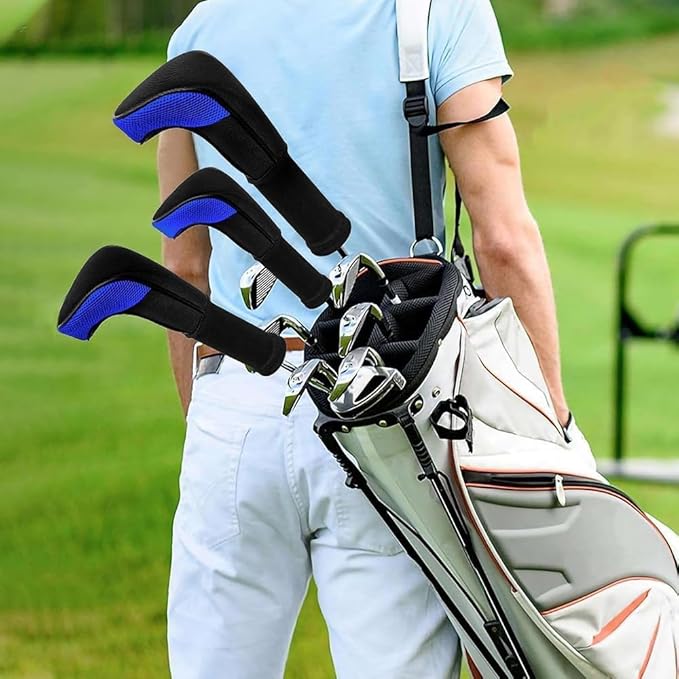 DFsucces ゴルフ ヘッドカバー 3個セット ロングネック ゴルフカバー ユーティリティ 耐久性 交換可能な 番号タグ付き