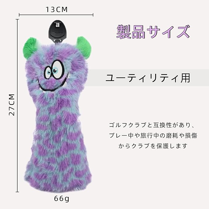 HELLO NRC ゴルフ ヘッドカバー ドライバー、フェアウェイウッド 、ユーティリティ3点セット かわいい ゴルフ クラブカバー セット (DR/FW/UT) 二重伸縮性バンド クラブにフィット 460cc 440cc 調節可能 ラベル ソフトで繊細 キュート スペックルド モンスター キャラクター しなやかさ プラッシュ てのゴルフブランドに適合