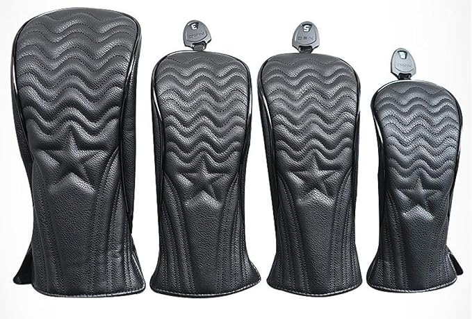 [SAISAC] ゴルフ ヘッドカバー 4点セット 高級 PUレザー DR FW UT ドライバー ウッド ユーティリティ 変換ダグ付き 防水 耐水 ソフトボア ヘッド保護