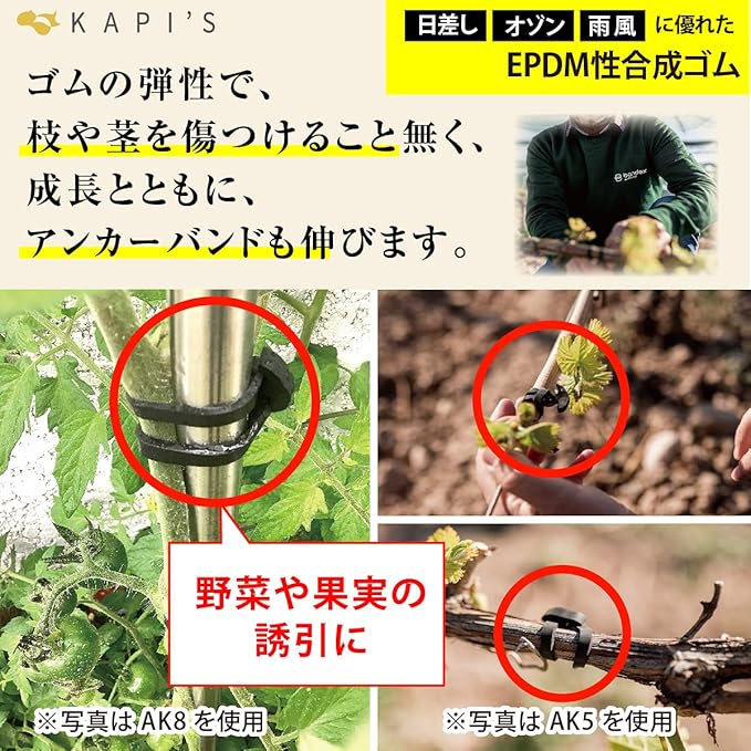 KAPI`S 楽らくアンカーバンド 結束 誘引 支柱 ネット 園芸 ガーデニング 農業 野菜 果実 EPDM 耐光性 耐水性 耐オゾン性 配線ケーブル 長持ち 5種類のサイズ 5種類の入数 AK5/AK8/AK10/AK15/AK18 (18, 100グラム)