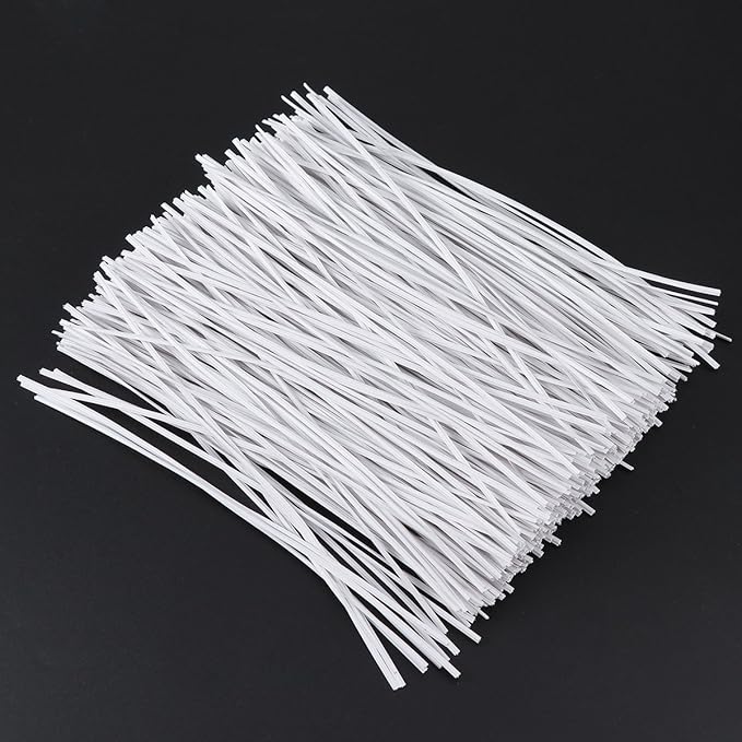 サイズ:約15 x 0.18cm;500本セット。 色:白。プラスチックと金属線の材質で、耐久性があり、繰り返して利用可能。500本の大容量で提供されており、多用途な使用に対応できます。
