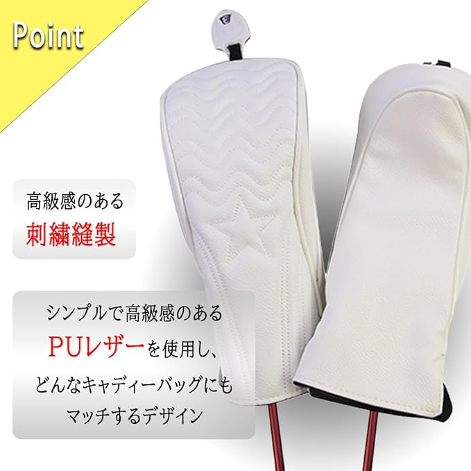 "【ゴルフ ヘッドカバー UT用】PUレザー製でユーティリティクラブのヘッドを保護しながら、スタイリッシュなデザイン。防水機能付きで雨天でも安心して使用可能 【変換タグ付き】U2、U3、U4、U5、U6、UXの番手タグが付属し、クラブに合わせて簡単に調整可能 【2色展開・セット販売】ホワイト、ブラックの2色展開で、1個セットと2個セットを選択可能 【耐久性抜群】高品質PUレザーとポリエステル裏地で耐久性と快適性を両立 【簡単着脱】大きめの開口部で、取り付け・取り外しがスムーズ"