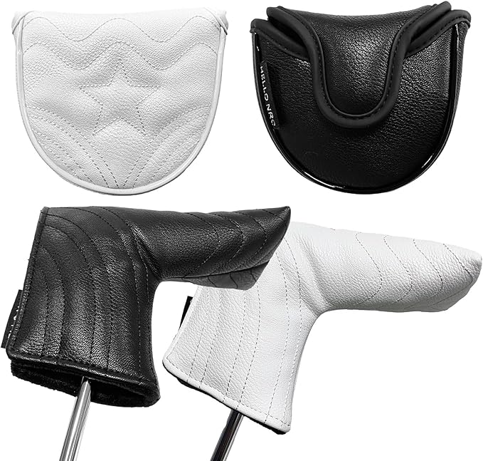 ゴルフ ヘッドカバー パター マレット カバー ピンタイプ ゴルフ ヘッドカバー 単品 波 黒 白 防水仕様 高級 PUレザー