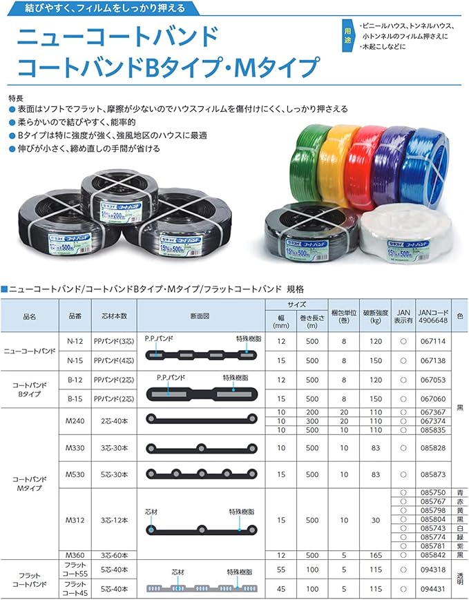 ・結びやすく、フィルムをしっかり押えるコートバンド