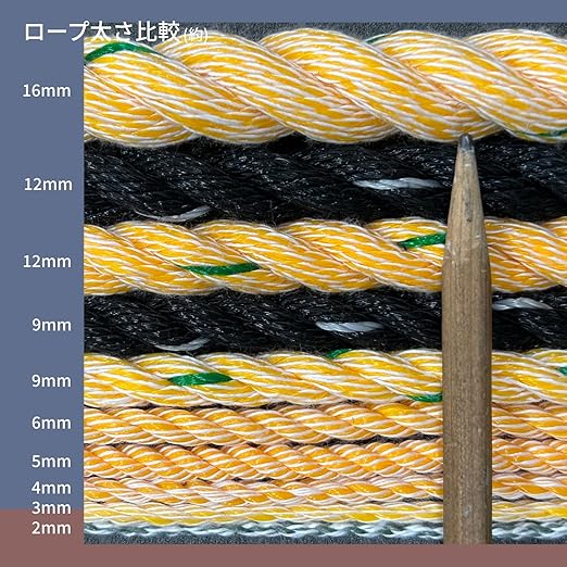●サイズ:線径9mm 長さ30m●質量:1.32kg●先端加工:両端 サツマ加工●引張強度:6.86KN(700kgf)●パッケージサイズ:縦360 横110 奥行70mm●製造国:中国