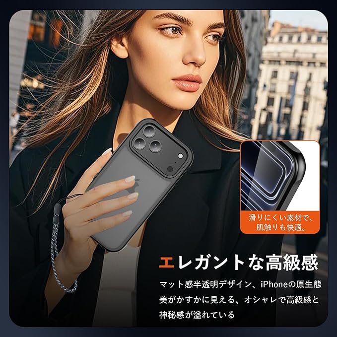 iphone 17 Pro Max 用 ケース Seefox【2025年9月発売】いphone17Pro Max スマホケース 半透明 マット感 アイフォン17プロマックス ケース 全面保護 耐衝撃 擦り傷防止 滑り止め 指紋防止 黄変防止 軽量 米軍MIL規格取得 ストラップホール付き iphone 17 Pro Max 対応 保護ケース (マットブラック)