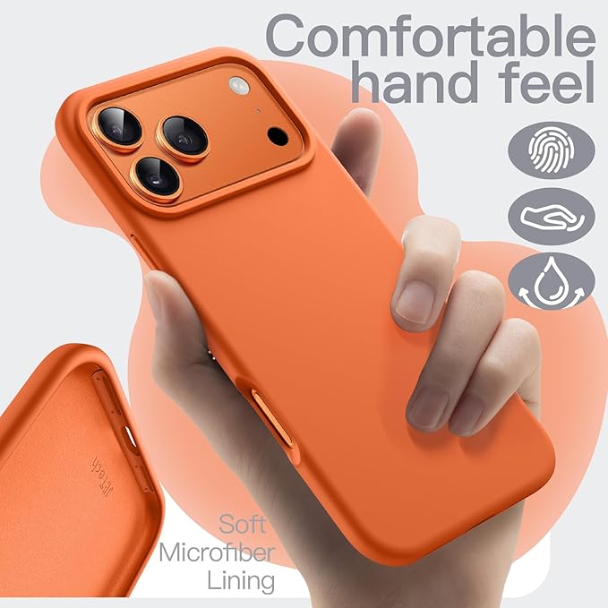 JETech iPhone 17 Pro Max 6.9インチ用 液体シリコンケース シルキーソフトタッチ 全面保護 マイクロファイバー裏地付き 傷防止 耐衝撃スマホカバー (オレンジ)