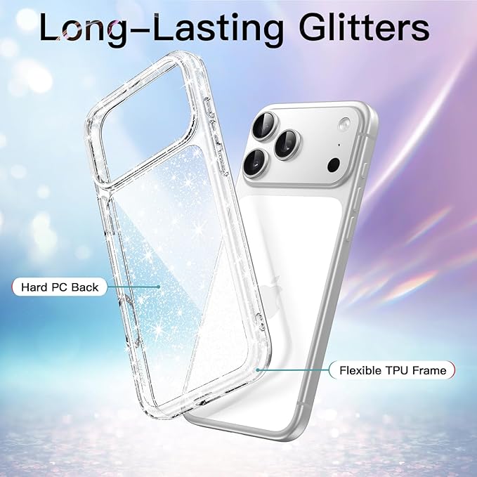 JETech iPhone 17 Pro Max 6.9インチ用 きらきら ケース ブリンブリン 衝撃吸収 バンパーカバー かわいい キラキラ 女性用 女子向け (クリア)