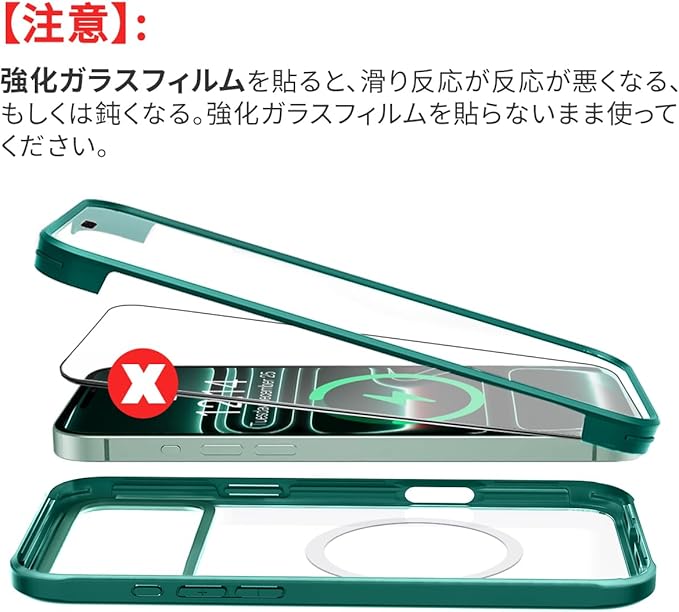 [軍用級360 全身保護]17 Pro Max Magsafe ケースはSGSの落下防止認証を取得し、両面強化ガラスとソフトTPUバンパーで作られています。 17 Pro Max Magsafe ケースは全面的な保護ができて、取り付け方も簡単です。16のスクリーンに傷つかないように 、17 Pro Max Magsafe ケースの内側にはガラススクリーンを保護するフィルムがあります。17 Pro Max Magsafe ケースには4つのエアクッション緩衝角があり、超薄型エアクッションで衝撃を減弱する技術を採用し、落ちる時の損害を防ぐことができます。