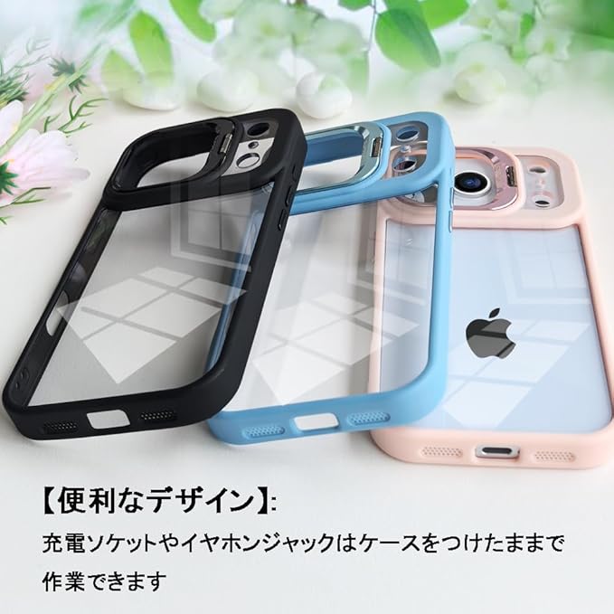 スマホケース 対応 クリア 透明 レンズスタンド付き スタンド機能 レンズカバー付き PC背面+TPUバンパー おしゃれ 耐衝撃 ストラップホール付き 携帯電話ケース