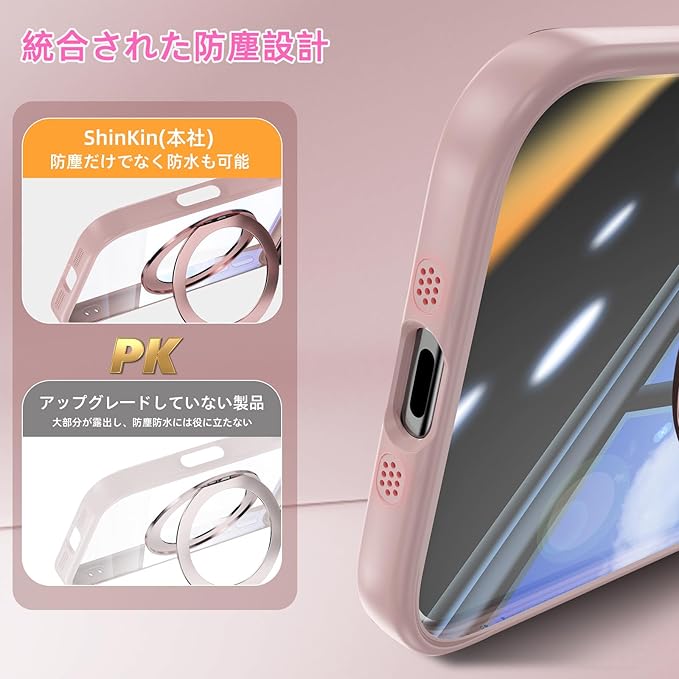 [ShinKin] スマホケース iPhone 17 Pro Max 用 ケース カバー 透明PC + TPU素材 ケース リング付き カバー スタンド機能 スマホケース 透明レンズフィルム保護機能付き 強化された保護 携帯電話のレンズフィルム 軽量 耐衝撃 擦り傷防止 落下防止 車載ホルダー 360 回転 ケース iPhone 17 Pro Max 用 (ピンク)
