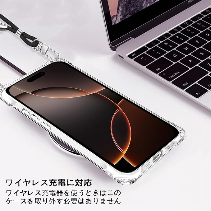 iPhone 17 Pro Max 用 ケース クリア ショルダー iphone17pro max 用 スマホケース アイフォン17ProMax カバー 肩掛け 斜めかけ 縄掛け 透明 TPU 薄型 軽量 耐衝撃 ケース 紐付き 斜めがけ 織りストラップ付き ネックストラップ ショルダー 縦/横 2WAY 長さ調整可能 取り外し可能 落下防止 紛失防止 ワイヤレス充電対応 (クリア)
