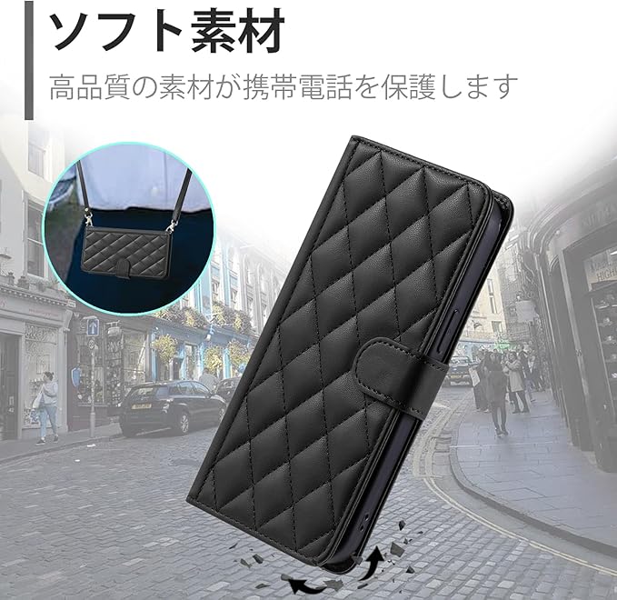laddutoi ケース 用の iphone 17 pro max ケース 防塵 おしゃれ ストラップ付き スタンド機能 カード収納 軽量 薄型 耐衝撃 高級PUレザー 滑り防止 財布型 内蔵マグネット 開閉式 チェック柄 上質 耐摩擦 マグネット式 肩掛け 斜め掛け-くろい
