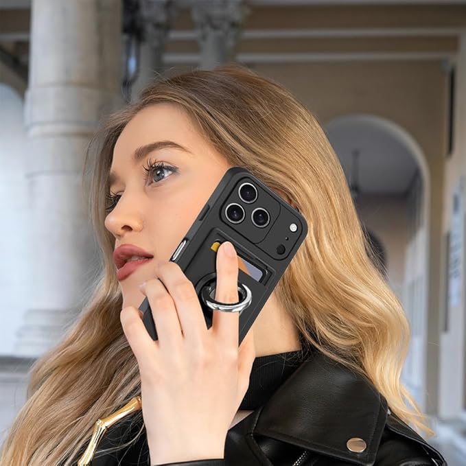 対応 iPhone 17 Pro Max ケース カード収納 リング付き シリコン アイフォン17promax スマホケース スタンド機能 360 回転リング 耐久 滑り止め 黑