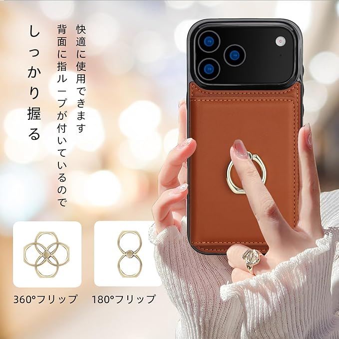 多機能:このあいふおん17プロマックス ケース リング付き 用ケースには、小銭入れ、ウィンドウカードホルダー、複数のカードスロット、スナップオンフラップが装備されており、重要なカードを完全に保護します。マグネット式の縦開きウォレットケースにはキックスタンド機能があり、特別なデザインです。背面のフラップを使用して、キックスタンドとして水平に置くことができます
