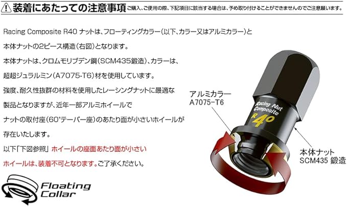 協永産業(KYO-EI) Kics Racing Composite R40 iCONIX M14xP1.5 14R球面座 ロック&ナットセット ブラック RI-14K8K