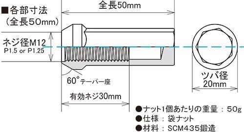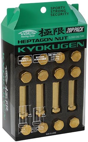 KYO-EI (協永産業) KYOKUGEN Closed End Type 7角形状ナット 50mm M12xP1.25 ゴールド 20個入 HPF3A5