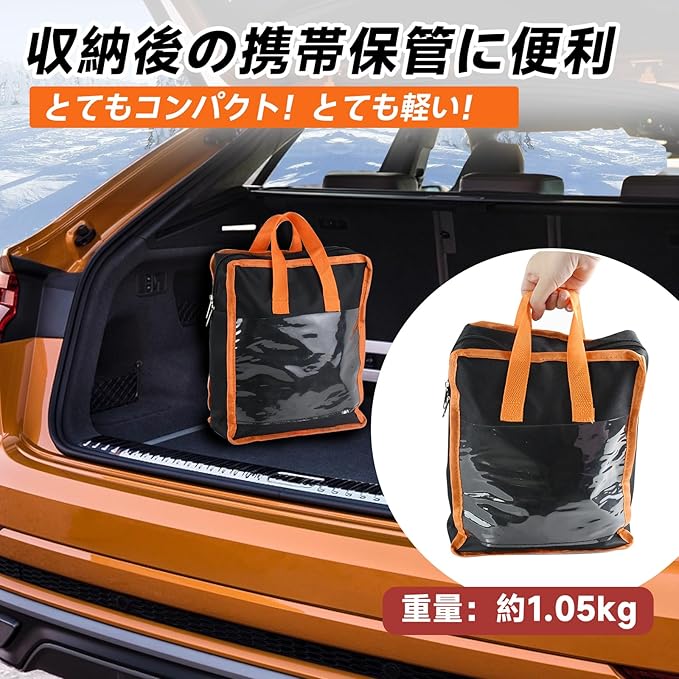 【簡単取付!ジャッキ不要】3分だけで取り付け完了、ジャッキが不要、簡単に装着が可能です。製品体積が小さい、収納バックが付き、車のトランクに入れてても邪魔にならないです。いつでも雪道で安心して走行できます。冬には雪対応を万全にします。