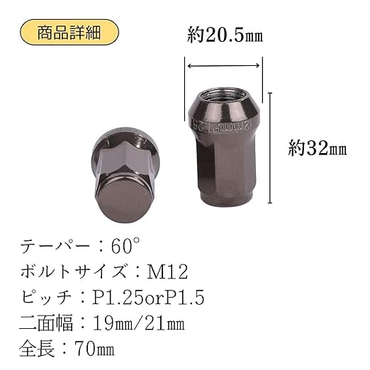 ねじサイズm12、日本の車種にほぼ合う汎用タイプです。 全てのナットが7角形(ヘプタゴン)でロックナット仕様(スチール製)です。ドレスアップと盗難防止にご利用ください。