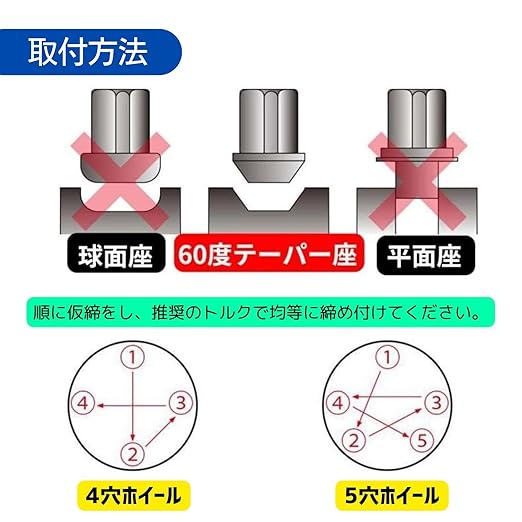 【盗難防止の外7角形】- ホイールナットは7角形なので、専用のロックナットアダプターがないと普通のトルクレンチでは締め付け取り外し不可能です。
