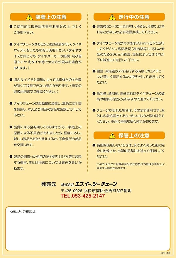 エフ・イー・シー(FEC) タイヤチェーン [ 雪道楽QII ] [ 備えて安心・冬の必需品 ] YQ212