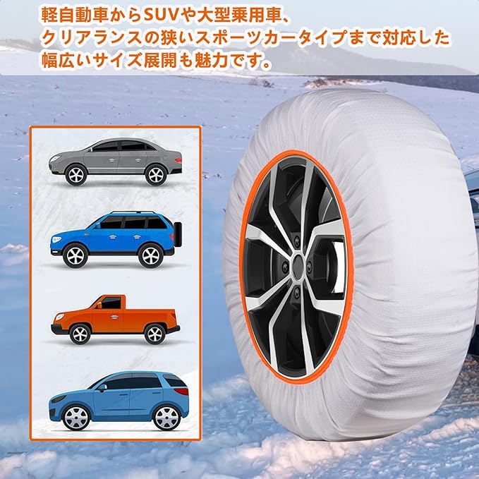 WENORE タイヤチェーン 布製 スノーソックス 規制適合 布チェーン 軽自動車用 取り付けが簡単 タイヤ滑り止 雪道 路面凍結対策 正規品 (385)