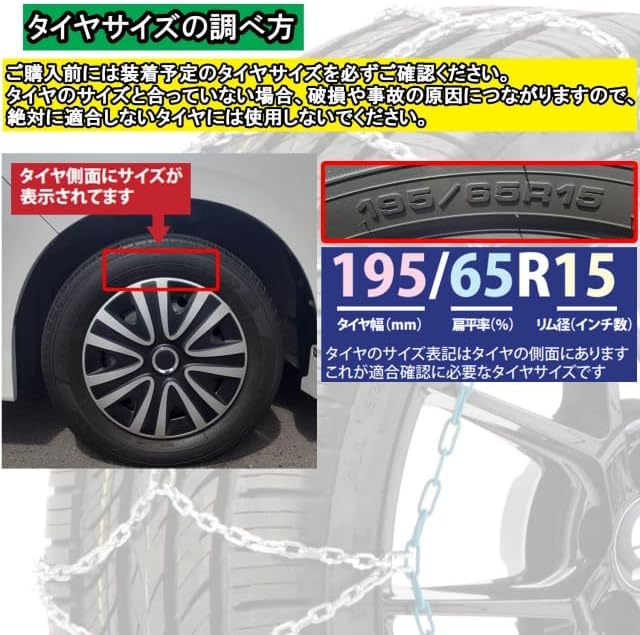 ■ジャッキアップ不要で取り付け可能 ■横滑りに強く静寂性に優れた亀甲型 ※事前に、取り付け、取り外し練習を行ってください ※タイヤチェーン装着時は30km/h以下で走行してください。(高速道路も同様)※この商品はラジアルタイヤ(夏用タイヤ)基準となっております。スタッドレスタイヤなど、一部装着できない場合があります。※装着にはタイヤと車体の間隔(クリアランス)が5cm以上必要です。また、車体と積載物の合計重量が2t以内でないと装着できません。
