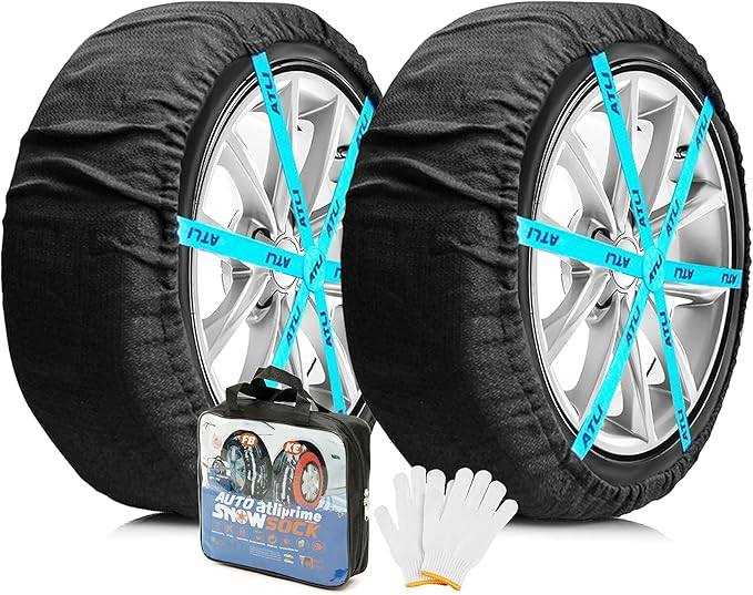SHADDOCK 布製スノーチェーン スノーソックス 非金属 布製タイヤチェーン 雪道 タイヤすべり止め 駆動輪2本分 低振動 低騒音 取付簡単 手袋付 緊急用 黒 81
