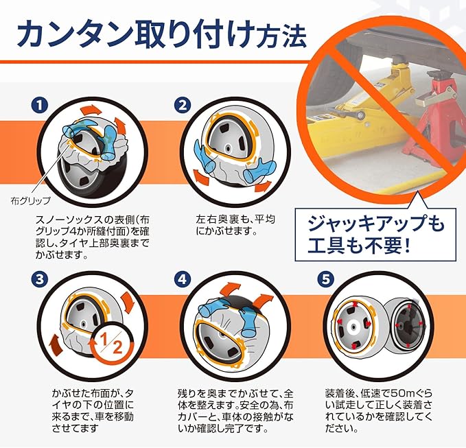 ●ソックスタイプだからチェーンのような金属音や空転はありません。