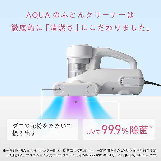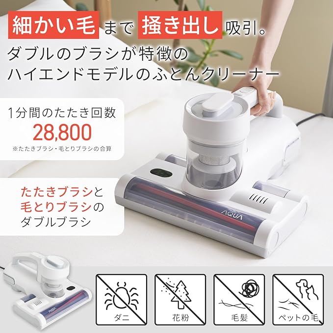 アクア (AQUA) 布団クリーナー ハイエンド (たたき28,800回) ダニ掃除機 ダブルブラシ (梅雨対策/UV除菌/ハウスダスト/花粉) 布団掃除機 水洗い可 CF10WR
