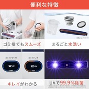 【UVライト搭載で99.9%除菌】紫外線(UV-C)を利用して除菌し、ふとんを清潔に保ちます。LEDタイプを採用しているため、省エネで長寿命を実現しています。また、ゴミセンサー搭載によって、目に見えないほこりやダニ、花粉といった物質の除去もセンサーで確認できるため安心です。