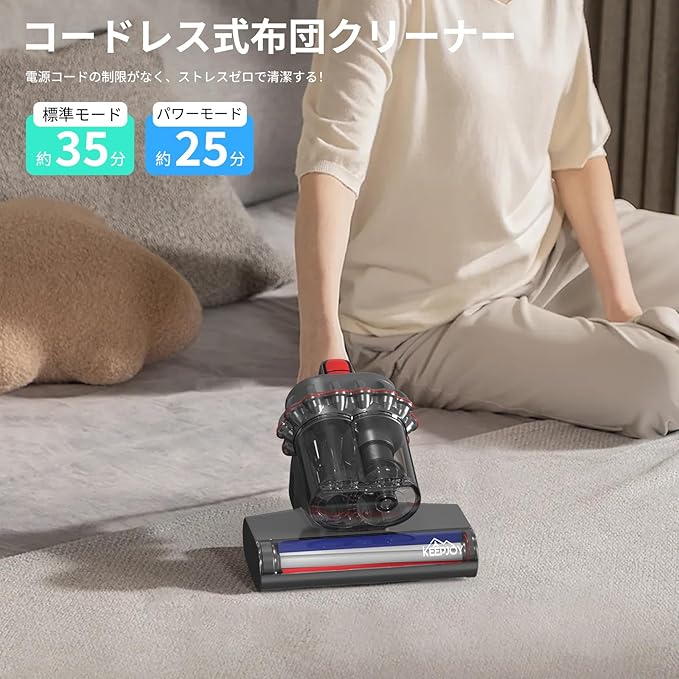 KEEPJOY 布団クリーナー コードレス ダニ除去 マットレスクリーナー 13Kpa ふとん掃除機 ダニちりセンサー搭載 超 タタキ振動 65℃温風機能 UVランプ除菌 超音波 HEPA ウイルス除去 0.6L大容量集塵 布団 マットレス ソファ カーペット 快適な寝心地 花粉の季節 梅雨の時期 CY801