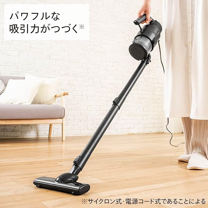 【サイクロン式 コード式で吸引力が持続】紙パックを使わないサイクロン式 コンセントから直接給電するコード式。目詰まりが少なく※、吸引力が持続します。 さらに、紙パックを購入する必要がなく経済的です。※プリーツフィルターは定期的に清掃してください。