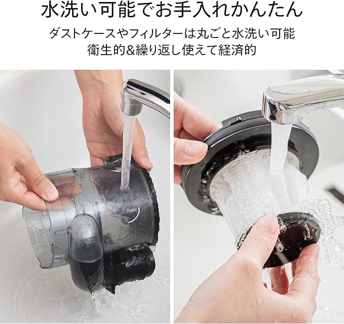 【水洗い可能でお手入れかんたん】ダストケースやフィルターは簡単に分解して丸洗い可能。 衛生的&繰り返し使えて経済的です。