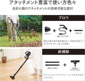 付属コンポーネント 延長パイプ(2本)、床用吸込口(タービンブラシ)、すき間ノズル、ブロワカバー、伸縮ホース(ハンドル付)、アタッチメント収納袋