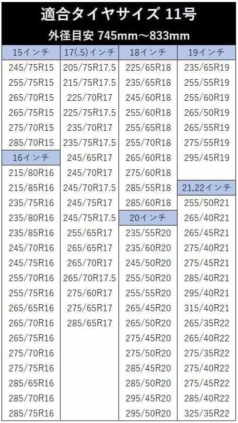 ◆適合タイヤサイズ(11号) 外径目安(745~833mm)