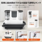 【大容量の水タンク】浄水タンクの容量は1.7リットル、汚水タンクの容量は0.6リットルです。十分な容量で洗浄中に頻繁に給水する必要がありません。また、タンクは上から広口設計で、給水や汚水タンクの手入れが気軽にできます。漏れや混乱を防ぎます。