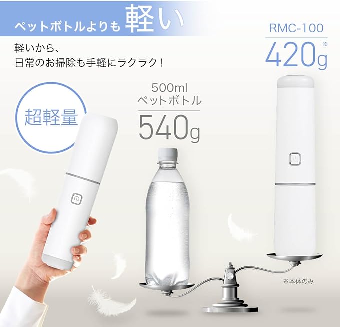 レイコップ ハンディクリーナー Mobi モビー 0.42kg軽量 11,000Pa 強力吸引 車用掃除機 卓上用 ミニ掃除機 卓上掃除機 強力吸引 小型 コードレス USBケーブル充電 2WAYノズル ホワイト RMC-100